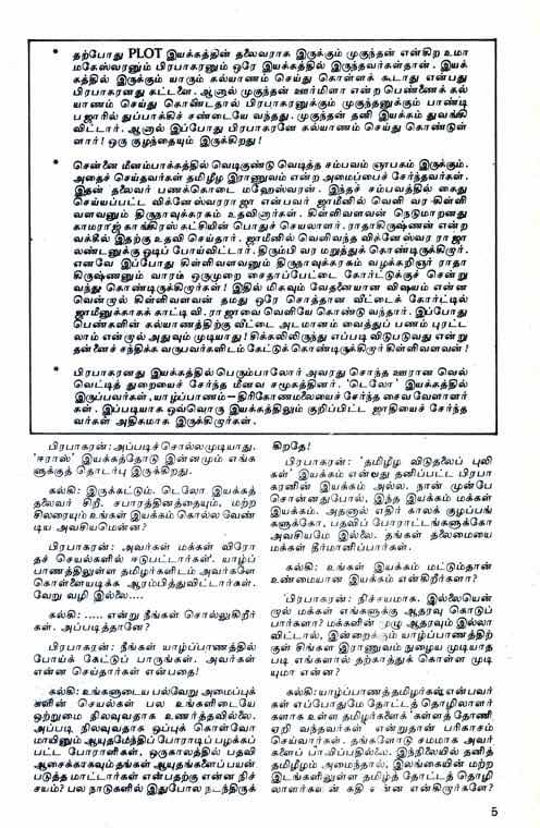 முப்பத்தி மூன்று ஆண்டுகளுக்கு முன்பு, 14.12.1986 தேதியிட்ட கல்கி இதழுக்காக, வேலுபிள்ளை பிரபாகரனிடம் முழுமையான பேட்டி ஒன்று வேண்டுமென்றும், அதற்கான நேரத்தைப் பெற்றுத்தர வேண்டும் என்றும் கல்கி பிரியனும் அவரது சகாக்களும் கேட்டுக் கொண்டனர். நேரத்தைப் பெற்றுத் தந்ததும் பிரபாகரனிடம் விரிவான பேட்டி எடுக்கப்பட்டது. அப்போது பேபி சுப்பிரமணியனும் நானும் உடனிருந்தோம்.
