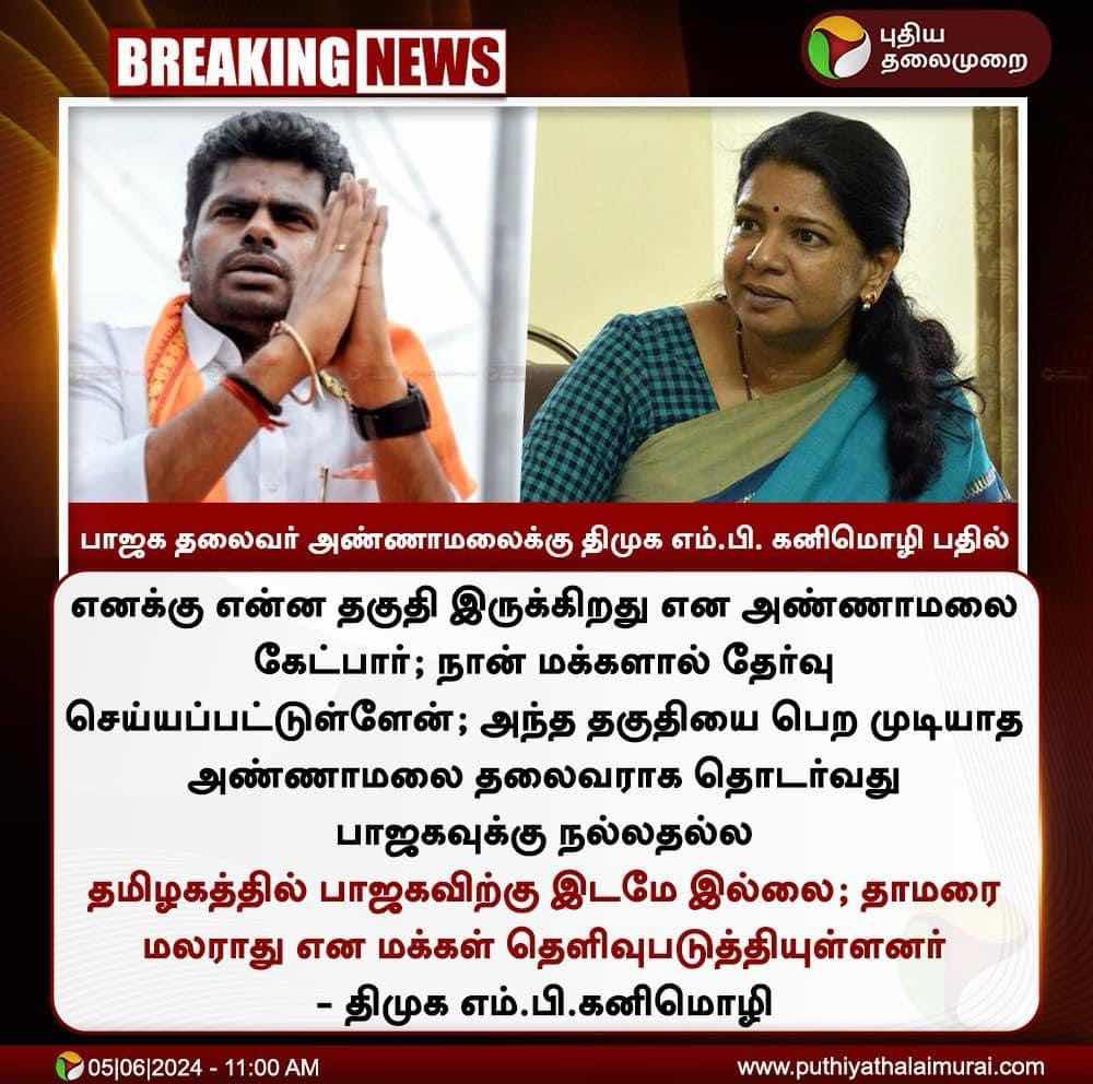 தமிழக பாஜக தலைவர் அண்ணாமலை தூத்துக்குடி தொகுதியில் வலிமையான கனிமொழிக்கு எதிராக நிறுத்தி இருந்தால் இப்படி கேள்வி கேட்பாரா⁉️ஏன் தூத்துக்குடியில் பாஜவுக்கு நல்ல வேட்பளார் இல்லையா❓எல்லாம் புதிராக உள்ளது….