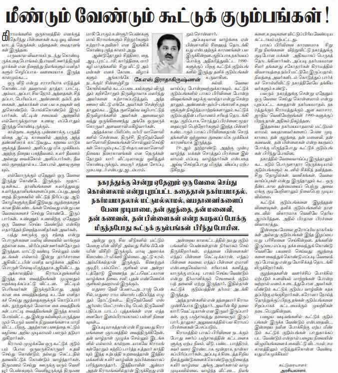 இன்றைய தினமணியில்(19-12-2024) கூட்டு குடும்பங்கள் குறித்த எனது நடுப்பக்க கட்டுரை