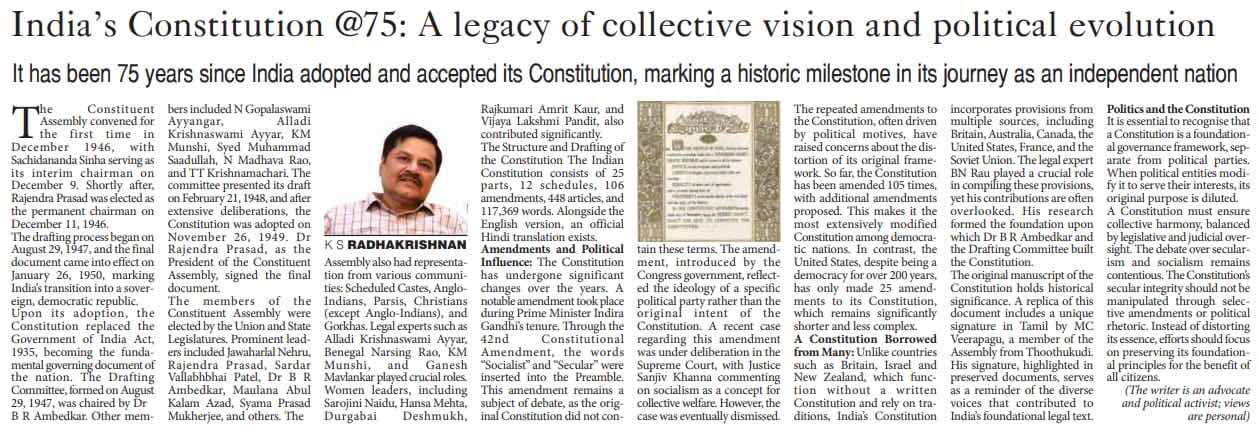 Today’s The Pioneer (7-1-2025) Delhi edition carried my article on the #ConstitutionofIndia-75….
